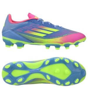“AG” på ‘står for “Artificial Ground”. Disse fodboldstøvler er designet til at blive brugt på kunstige græsoverflader, såsom 3G eller 4G kunstgræs, som er blevet mere og mere populære i de senere år i hele landet. AG-støvler har en sålplade med en kombination af runde og ovalformede knopper, der giver greb på den kunstige græsoverflade.